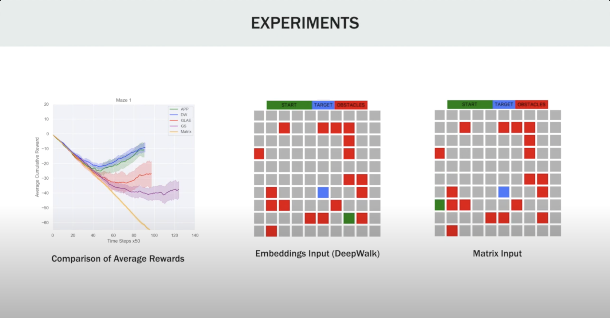Graph-based State Representation for Deep Reinforcement Learning. Deep Reinforcement Learning has gained popularity in recent years. While these approaches have been successful, they still suffer from high sample complexity. Neural networks are able to extract features from the input space, but in this work, we explore how better input representations to the network can improve its performance. The underlying MDP of an RL task represents a graph. This enables us to incorporate topological information in the input representations. We use and compare several node representation learning algorithms for a grid-world navigation task. We find out that all embedding methods outperform the simpler matrix input to the network. We also perform a systematic comparison and conclude that the first neural approach for learning node representations outperforms most of the other methods. Our results suggest that more research may be needed in developing deep learning models for graphs that can improve over the (relatively simple) DeepWalk baseline.